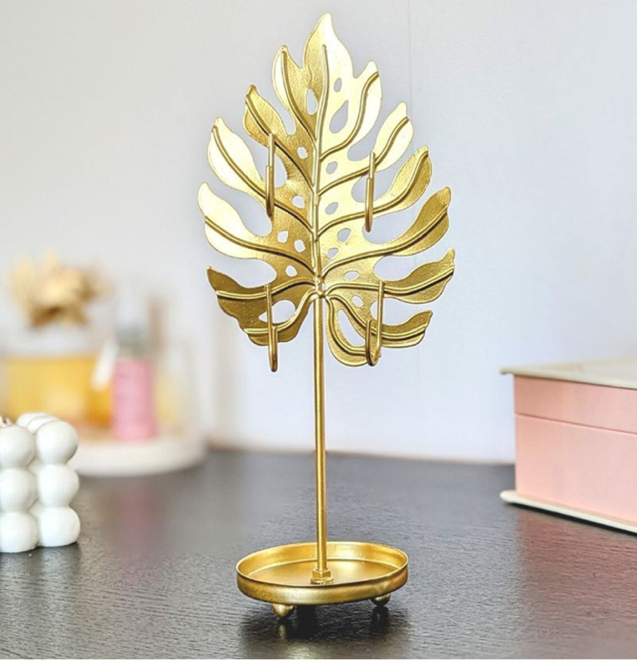 ขาตั้งเครื่องประดับใบไม้มอนสเตราสีทองทันสมัยดีไซน์เขตร้อนที่ไม่เหมือนใครสำหรับต่างหูและเครื่องประดับขนาดเล็กในราคาขายส่ง