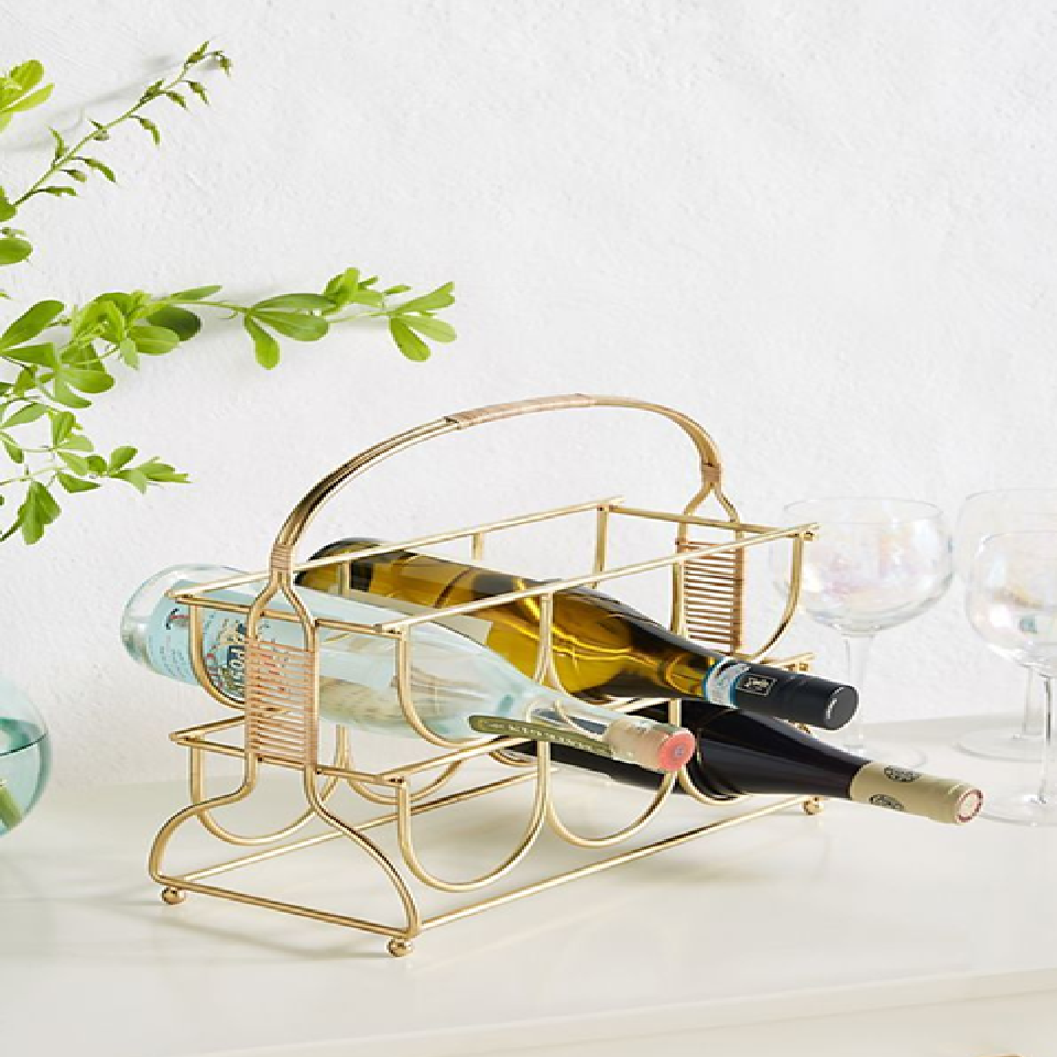 ชั้นวางไวน์สีทองที่ทันสมัยด้านบนหินอ่อนสีขาวถือได้ถึงเก้าขวดในการออกแบบซิกแซกมีจำหน่ายในราคาขายส่ง