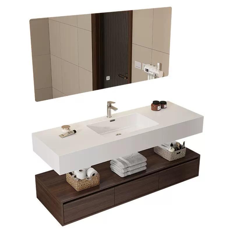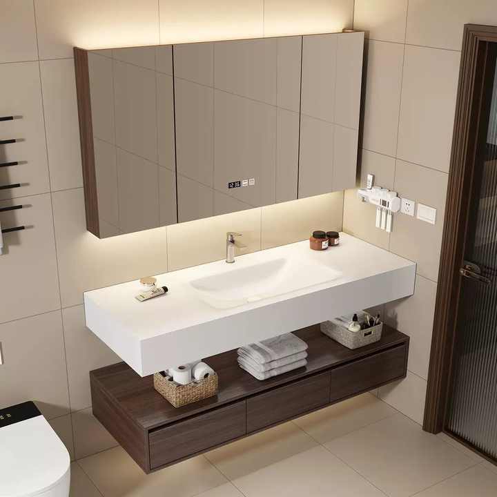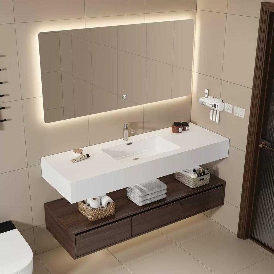 ตู้ห้องน้ำติดผนังแบบโมเดิร์นพร้อมอ่างเซรามิกแบบสองชั้นทรงลึกจากแผ่นหิน