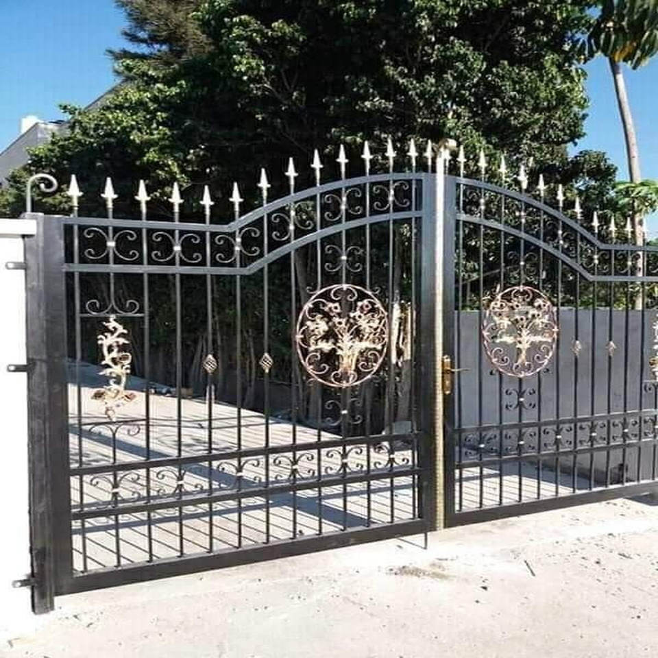 ประตูเหล็กที่ทันสมัยสำหรับรถบ้านที่ผลิตในเวียดนามพร้อมสำเนียงปลอมด้วยมือและตัวเลือกมิติที่กำหนดเอง