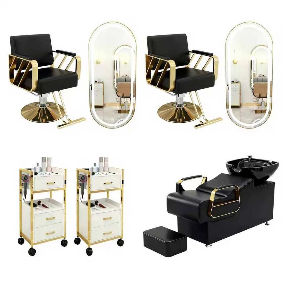 ชุดอุปกรณ์ร้านทำผมหนังแท้ทันสมัยครบชุด รวมถึงโครงกระจกและเตียงสระผม เหมาะสำหรับร้านทำผมและมีจำหน่ายแล้ว