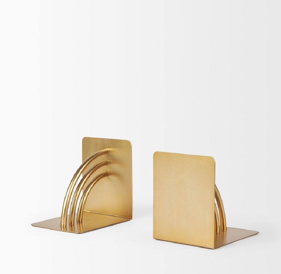 ที่คั่นหนังสือทรงโค้งสามท่อสีทองสไตล์มินิมอลทันสมัยสำหรับชั้นวางแบบร่วมสมัย มีจำหน่ายในราคาขายส่งวันนี้