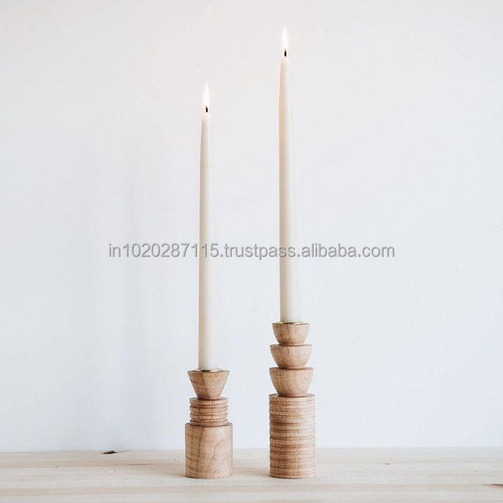เชิงเทียนไม้ธรรมชาติที่ทันสมัยสำหรับการตกแต่งภายในแบบมินิมอลและไอเดียสร้างแรงบันดาลใจให้แสงยามเย็นที่อบอุ่นและสบาย