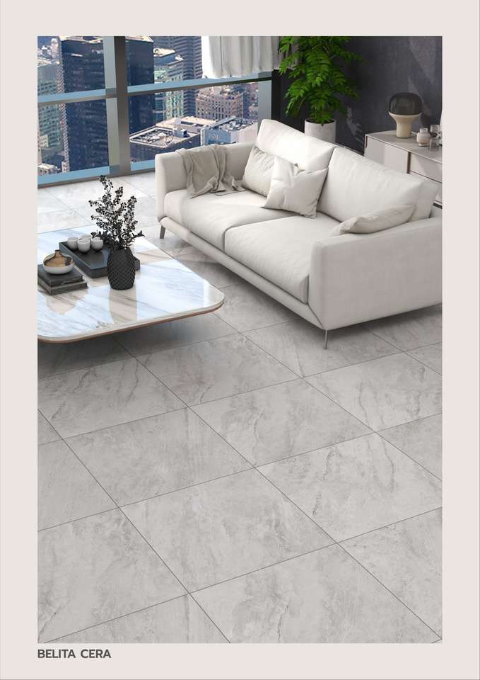 กระเบื้องพอร์ซเลนสมัยใหม่ขนาด 60x60 ซม. พร้อมลวดลายแกะสลักแบบด้าน เพิ่มมิติให้กับพื้นผิวอย่างประณีตและสร้างบรรยากาศภายในที่มั่นคง