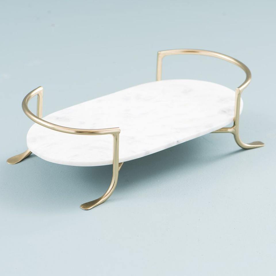 ถาดไม้ทรงสี่เหลี่ยมทันสมัยพร้อมหูจับทองเหลือง แท่นเสิร์ฟยกสูงสำหรับโต๊ะอาหารในครัว ร้านกาแฟ และบ้านหรู