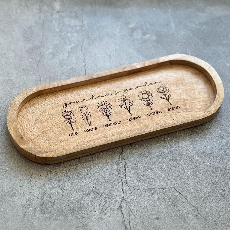 ถาดไม้ทรงสี่เหลี่ยมทันสมัยพร้อมฐานลายดอกไม้ ถาดเสิร์ฟตกแต่งสำหรับโต๊ะอาหารเช้า โต๊ะกาแฟ และการตกแต่งบ้าน