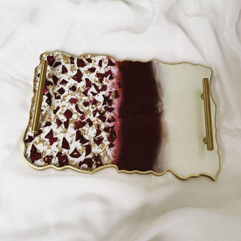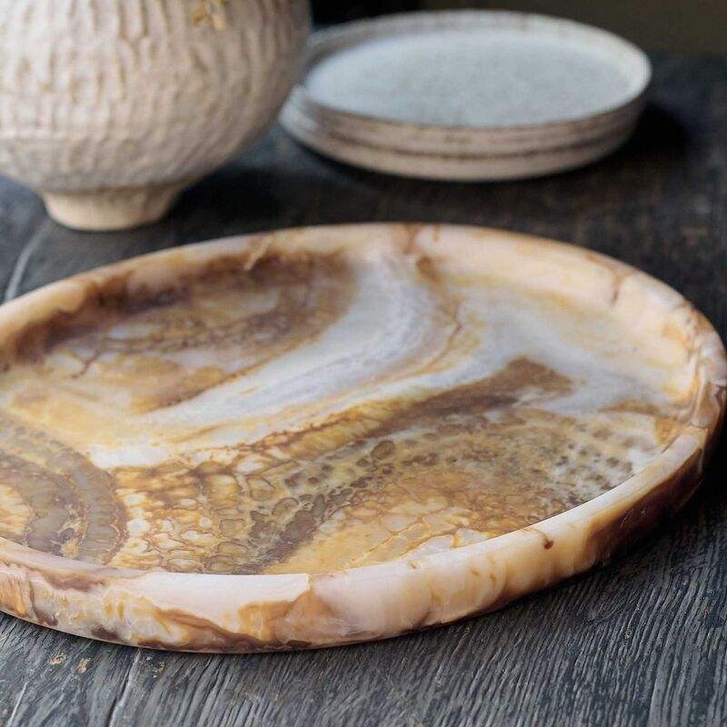 จานเรซิ่นเสิร์ฟแบบทันสมัยทำมือลวดลายทันสมัยเหมาะสำหรับเสิร์ฟของหวานของหวานผลไม้หรือของตกแต่งกลางโต๊ะ