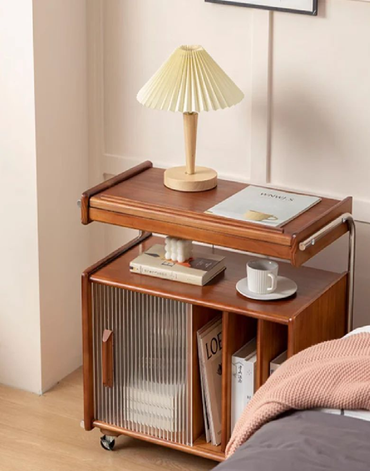 โต๊ะข้างเตียงแบบมีล้อเลื่อนทันสมัย พร้อมแผงเลื่อน ช่องวางหนังสือ และผิวไม้เรียบหรู ใช้งานได้หลากหลาย ในราคาขายส่ง