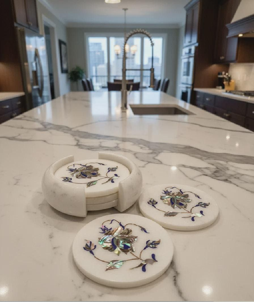 ถาดรองแก้วหินอ่อนและไม้ดีไซน์เนอร์