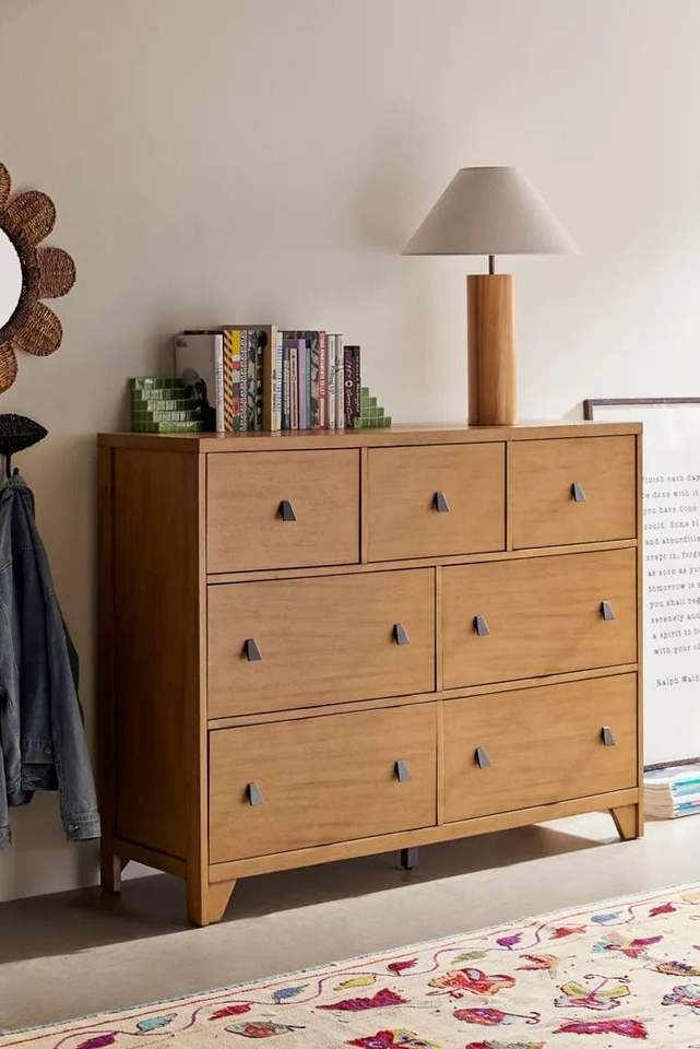 นักแต่งตัวลิ้นชักไม้สไตล์ชนบทที่ทันสมัยทำด้วยมือเพื่อความสวยงามในการตั้งค่าแบบมินิมอลหรือคอทเทจ