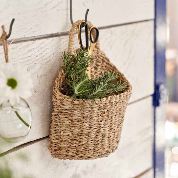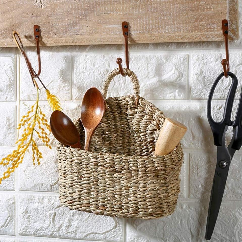 ตะกร้าแขวนหญ้าทะเลแบบทันสมัยสำหรับตกแต่งห้องครัวตะกร้าฟางธรรมชาติบนผนังและประตู
