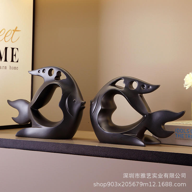 เครื่องประดับสุดสร้างสรรค์รูปปลาจูบคู่แบบเรียบง่ายทันสมัยสำหรับบ้านห้องนั่งเล่นตู้ทีวีทางเข้าของตกแต่งโต๊ะของขวัญ