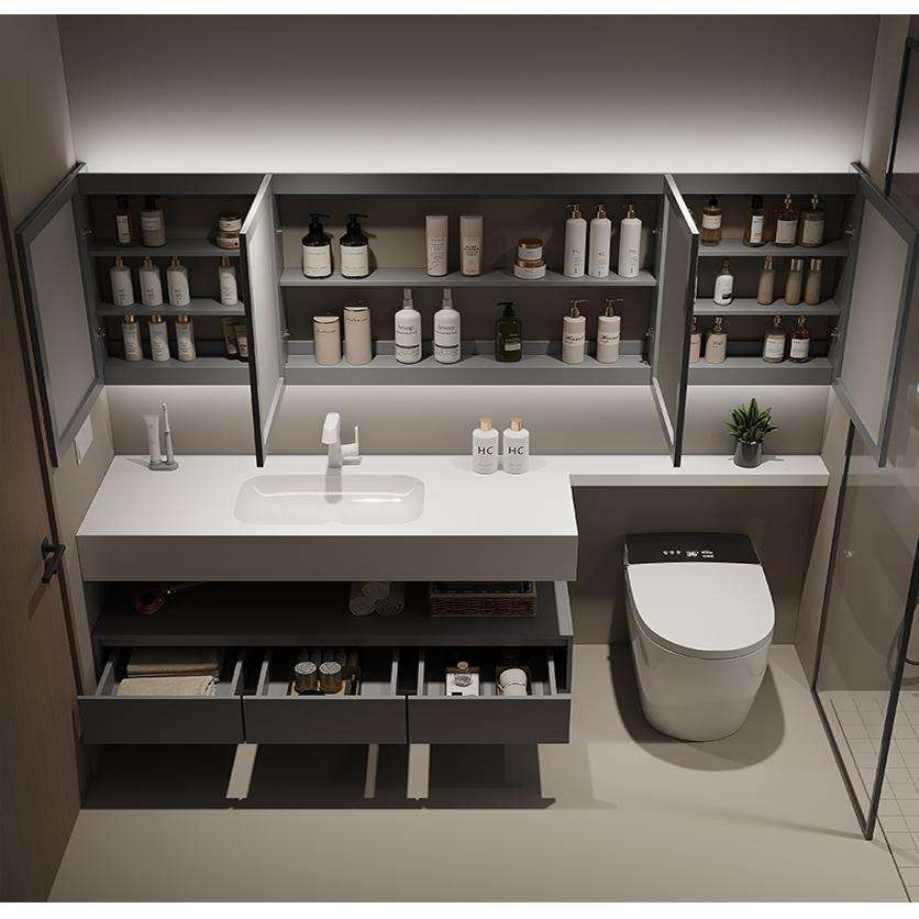 ชั้นวางของในห้องน้ำแผ่นหินแบบเรียบง่ายทันสมัยอ่างล้างหน้าอัจฉริยะสำหรับห้องน้ำตู้อ่างล้างหน้าแผ่นรองชักโครกแบบขยายได้