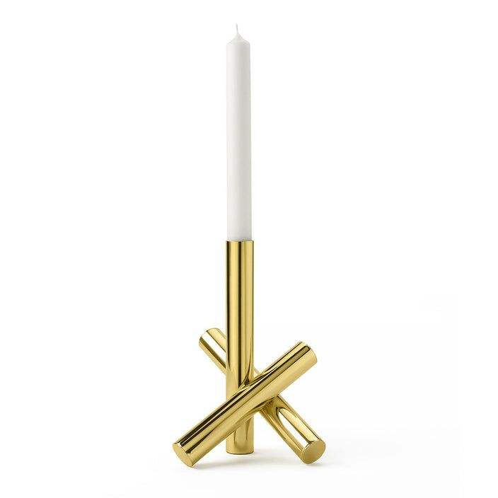 เชิงเทียนทองเหลืองแบบเรียงซ้อนที่ทันสมัยเชิงเทียนโลหะตกแต่งแบบแท่งที่วางของตกแต่งโต๊ะแบบมินิมอลไฟบ้าน