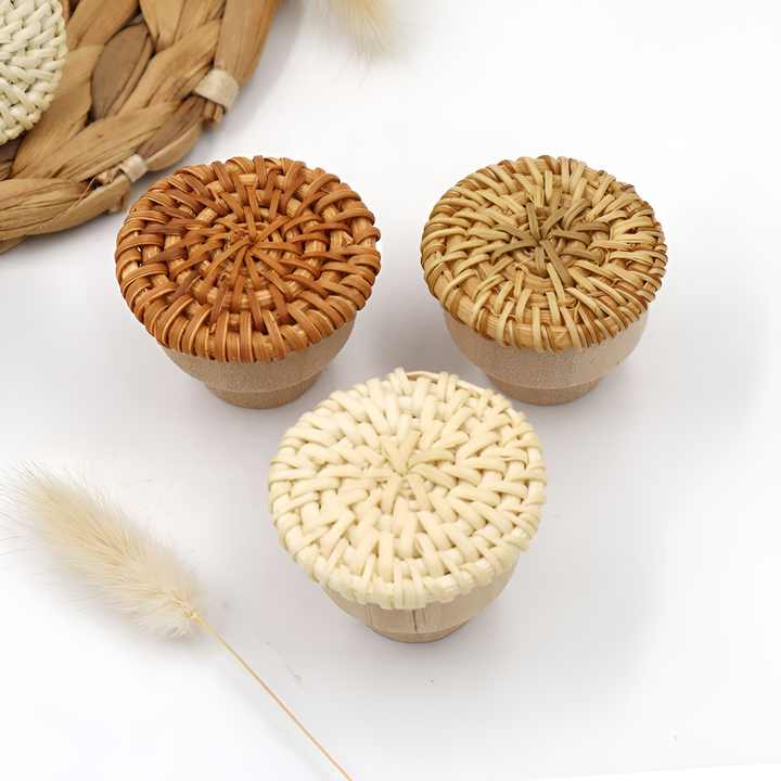 ลูกบิดมือจับตู้ครัวสไตล์โมเดิร์นทำจากหวายจับดึงลูกบิดสำหรับตู้ลิ้นชักประตูเฟอร์นิเจอร์