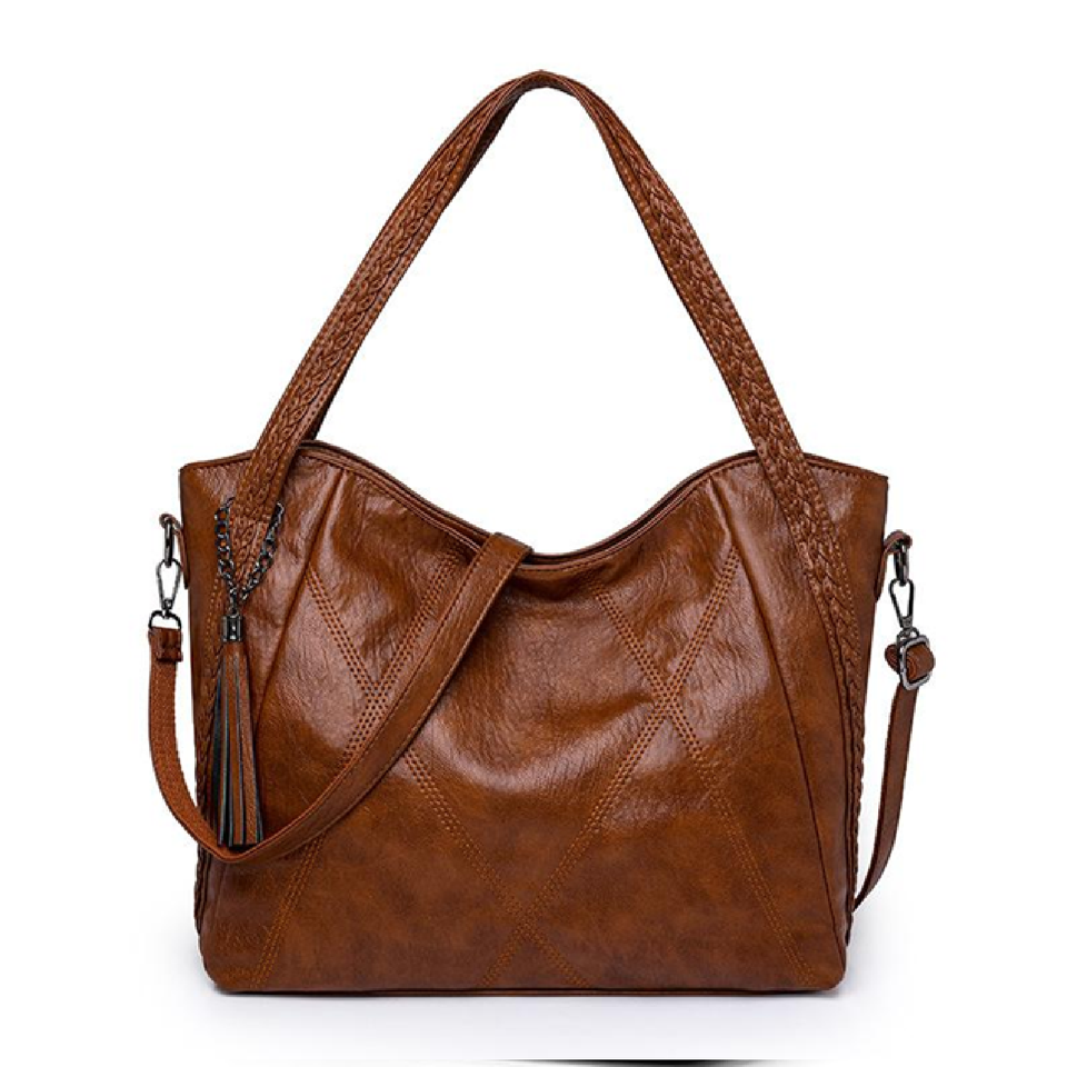 กระเป๋าหนังสีน้ำตาลทันสมัยที่มีด้ามจับแบบถักที่โดดเด่นและดีไซน์เรียบง่ายทันสมัยในราคาขายส่ง
