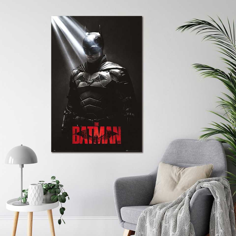โปสเตอร์แบทแมนสมัยใหม่ที่มีดีไซน์เงาของโรเบิร์ต พัตตินสันสำหรับติดผนัง