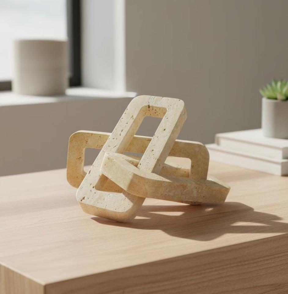 ชุดประติมากรรมหินทราเวอร์ทีนสมัยใหม่ ดีไซน์เรขาคณิต พร้อมฐานโลหะ ให้ความสง่างามอย่างศิลปะสำหรับการตกแต่งบ้านที่หรูหรา