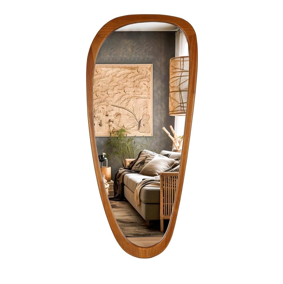 กระจกติดผนังทรงกลมลายคลื่นพร้อมกรอบไม้เนื้ออ่อนสำหรับตกแต่งห้องนั่งเล่นห้องนอนทางเข้าบ้านธรรมชาติสไตล์โบฮีเมียน