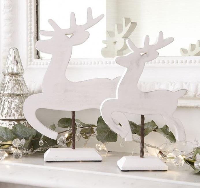 ของประดับตกแต่งโต๊ะคริสต์มาสไม้สไตล์โมเดิร์น รูปทรงสัตว์ที่สวยงาม พร้อมใบไม้สีเขียวสำหรับฤดูหนาว