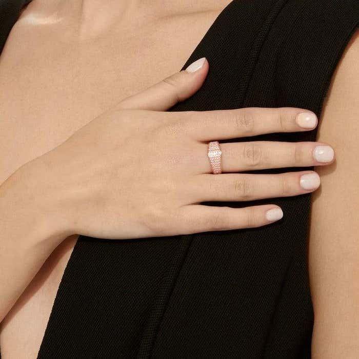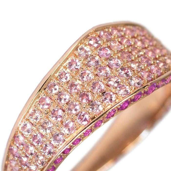 แหวนพลอยสีชมพูทรงโมเดิร์นนิสต์ ประดับเพชรทรงกลมสีชมพู แหวนแต่งงานสำหรับผู้หญิง ดีไซน์โค้งมนประณีต ประดับทัวร์มาลีนและเพชร แหวนอัญมณีชั้นดี
