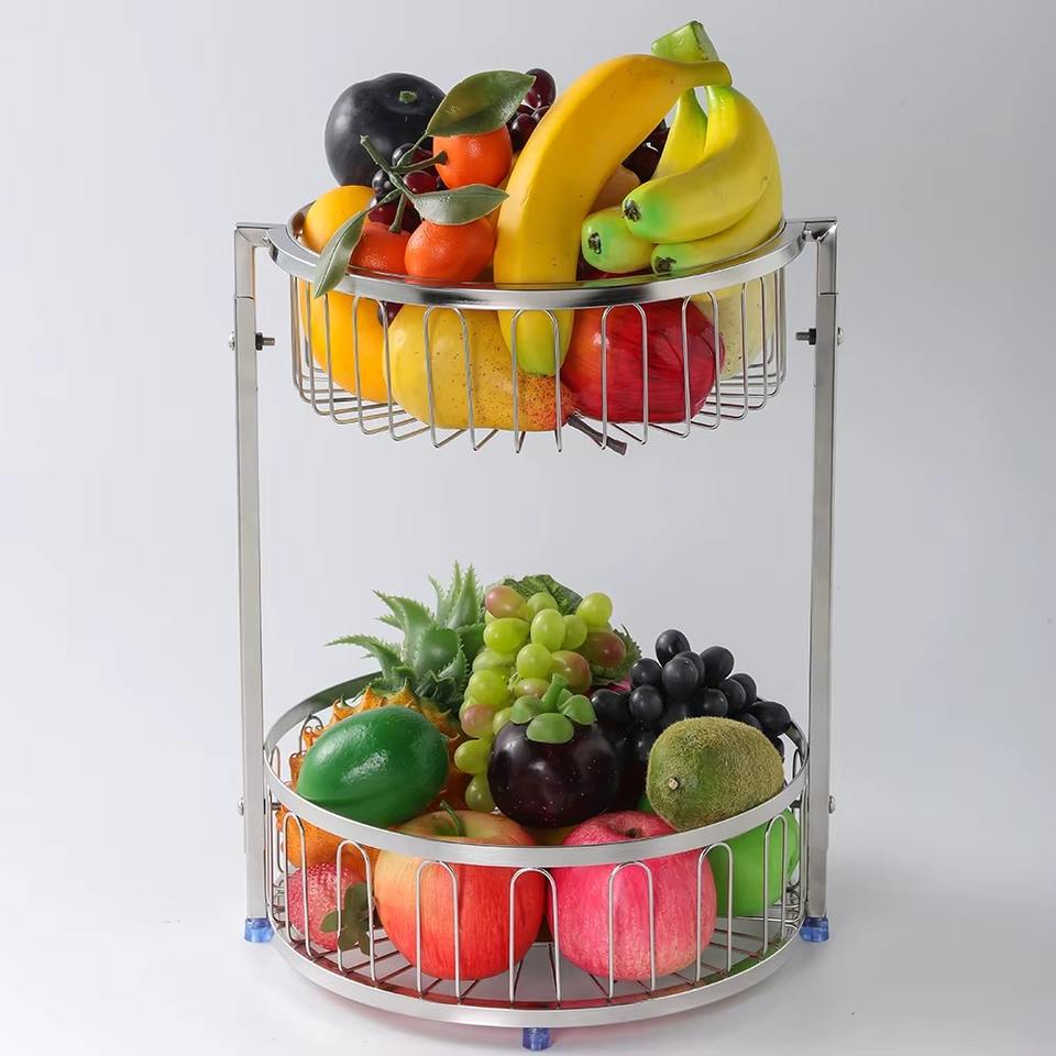 ตะกร้าผลไม้สแตนเลสสีเงินสไตล์โมเดิร์น เป็นมิตรกับสิ่งแวดล้อม สามารถใช้เป็นของตกแต่งกลางโต๊ะและเคาน์เตอร์ได้