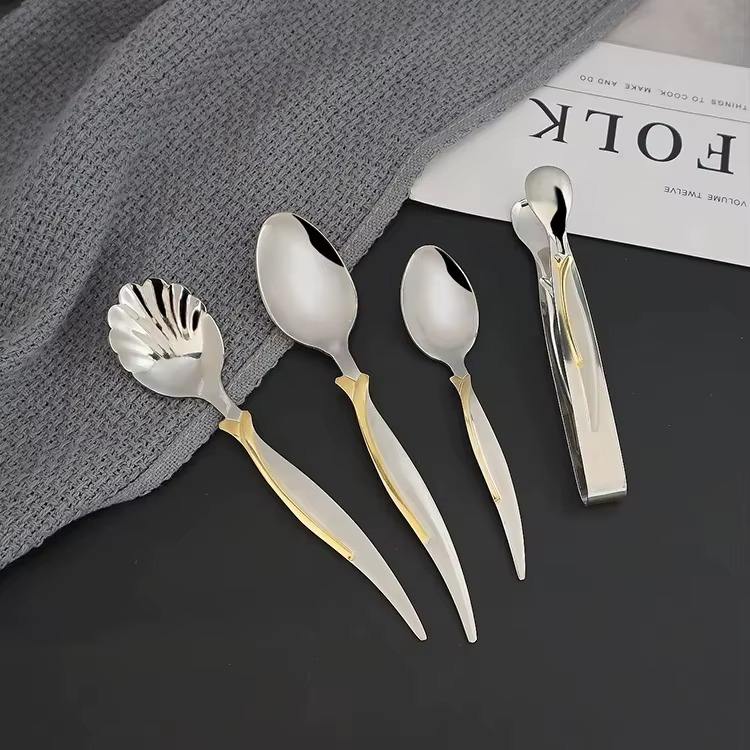 ชุดช้อนส้อมด้ามโค้งเรียบหรู เหมาะสำหรับงานเลี้ยงอาหารค่ำอย่างเป็นทางการ โรงแรม ร้านอาหาร การจัดโต๊ะอาหารอย่างมีระดับ และการตกแต่งงานอีเว้นท์ที่บ้าน
