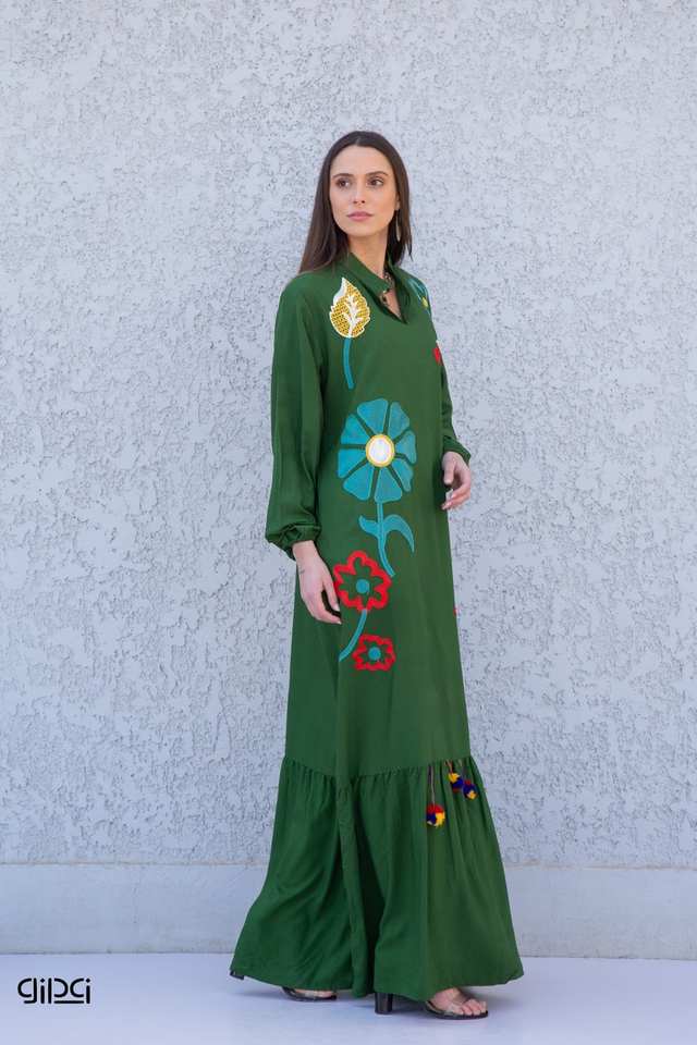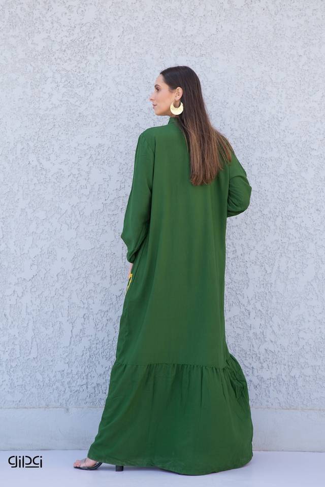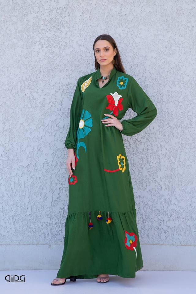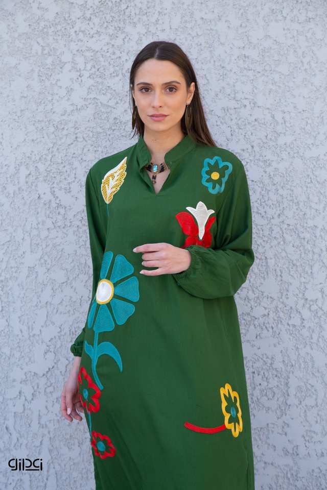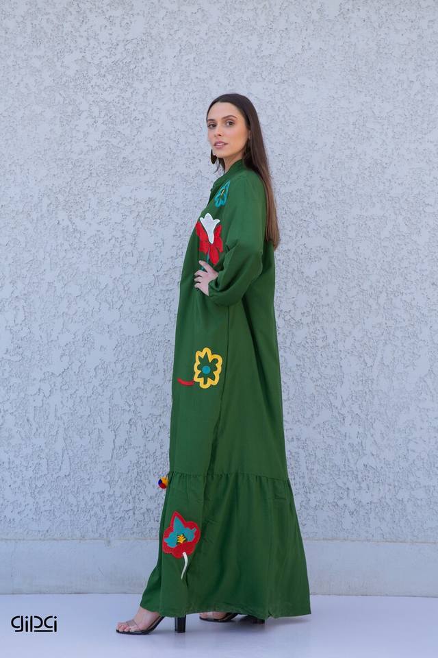 ชุดเดรสผ้าฝ้ายสีเขียวสไตล์อาหรับแบบเรียบง่าย ปักมือ แขนยาว ความยาวระดับเข่า สำหรับงานปาร์ตี้ ผู้หญิง ระบายอากาศได้ดี ดูเป็นธรรมชาติ