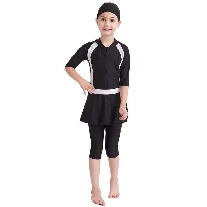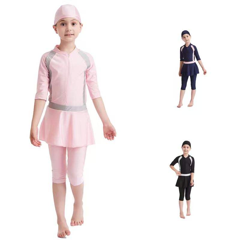 ชุดว่ายน้ำบุรกินีแบบมุสลิม 3 ชิ้น ผ้าโพลีเอสเตอร์ระบายอากาศได้ดี สำหรับเด็กผู้หญิง - ชุดชายหาดและชุดอาบน้ำ