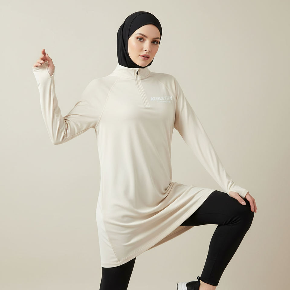 เสื้อเชิ้ตยาวผู้หญิงมุสลิม มีซิปครึ่งตัว