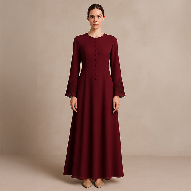 ชุด Baju kurung ขนาดพลัสไซส์ผ้าโพลีเอสเตอร์ระบายอากาศพร้อมลูกไม้ปักลายมุสลิมแบบดั้งเดิมสำหรับโอกาสในงานเทศกาล