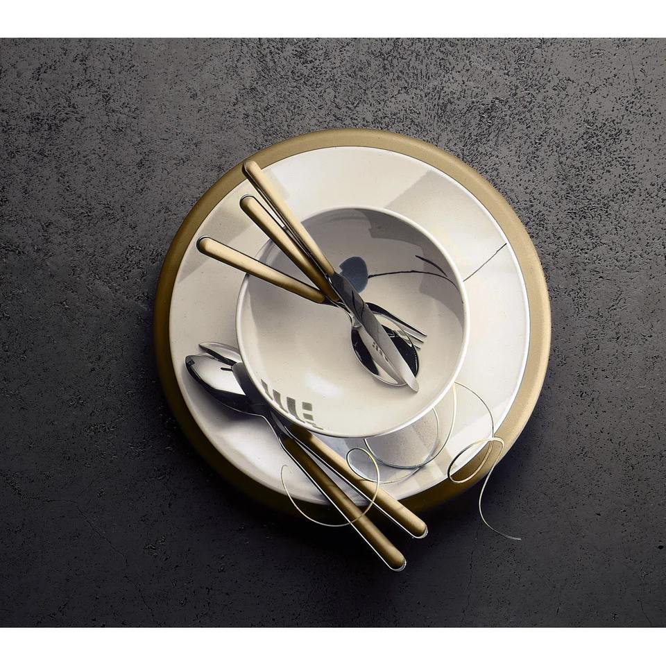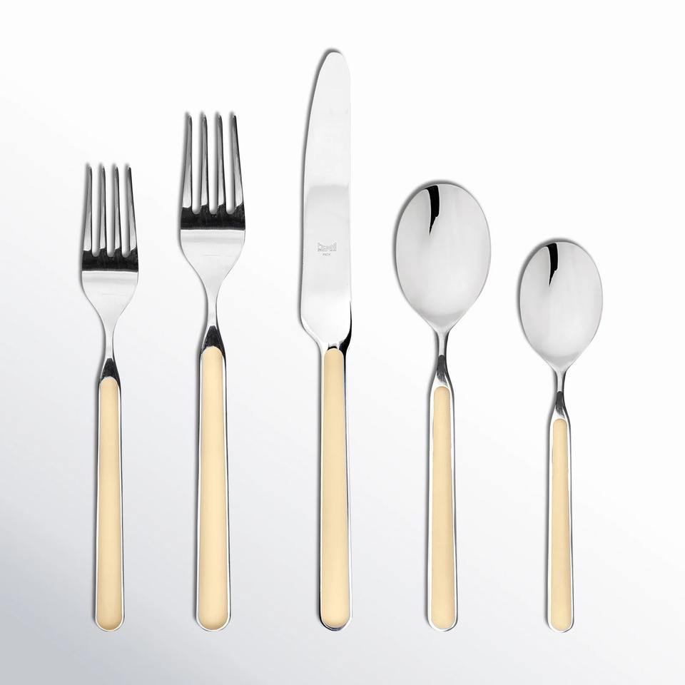 ชุดช้อนส้อมสเตนเลสสีเงินพร้อมที่จับวานิลลาสำหรับโต๊ะอาหารของขวัญจัดงานแต่งงานและเสิร์ฟ