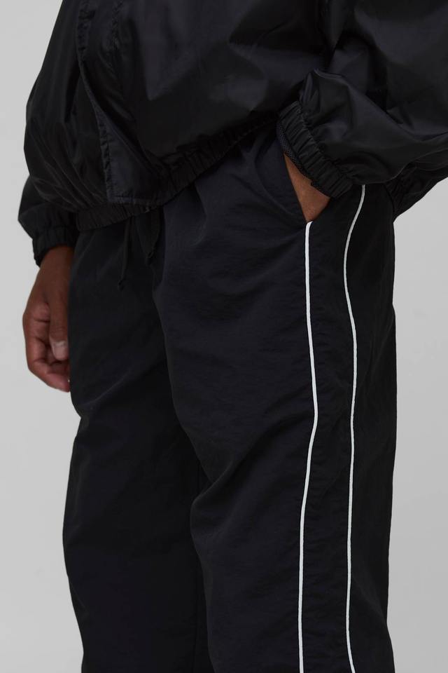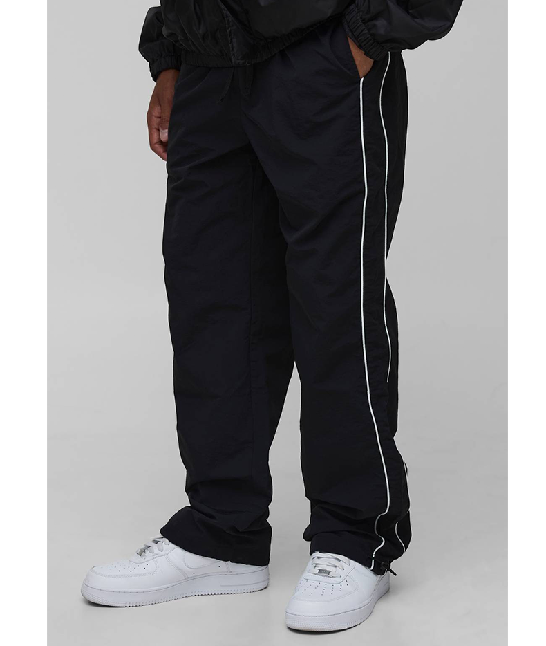 กางเกงวอร์มทรงหลวมสไตล์เรียบง่ายสำหรับผู้ชาย ลายทางด้านข้าง พิมพ์ลายซิลค์สกรีนแบบกำหนดเอง น้ำหนักเบา ไซส์ XL กางเกงไนลอนกันลม