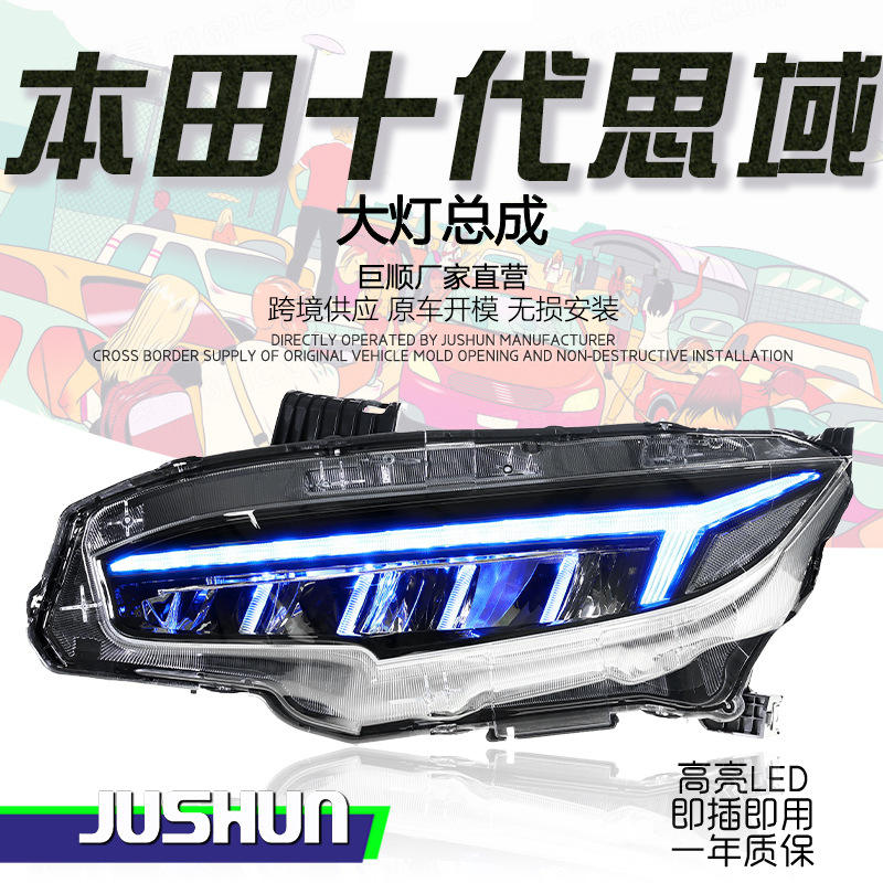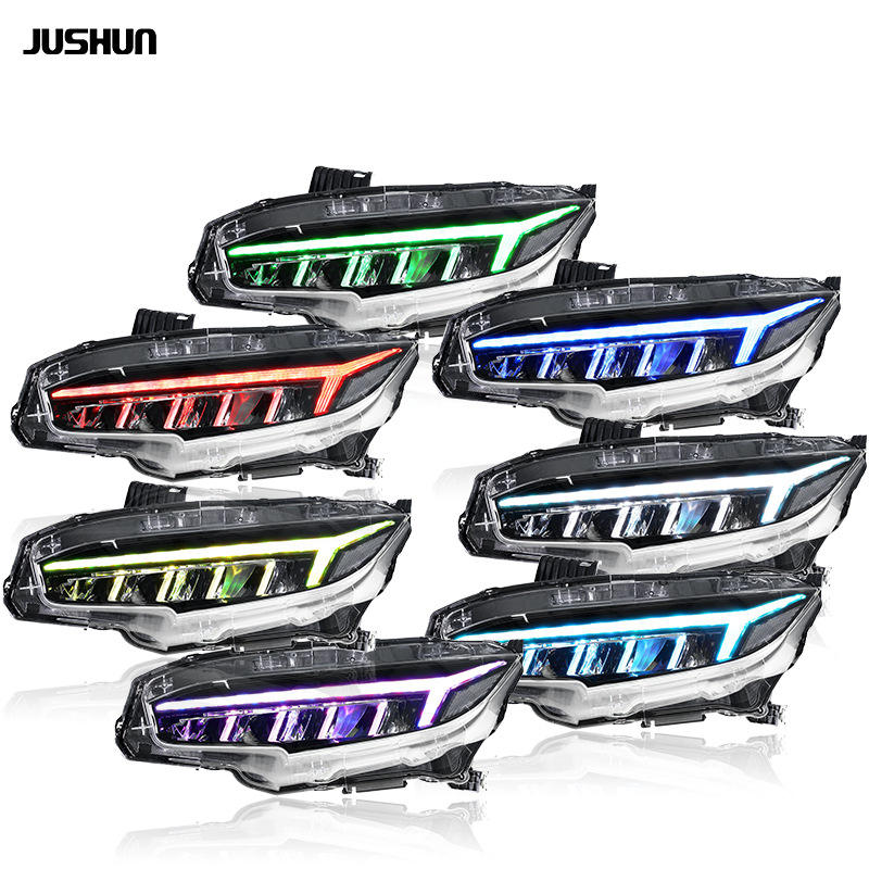 Modified Dragon Wing RGB LED Headlight Assembly for 16-21 for Honda 10th Generation for Civic Daytime Running Light Streamer