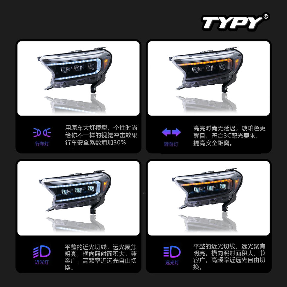 ชุดไฟแอลอีดีสำหรับเครื่องปั่นบนถนน15-22สำหรับฟอร์ดแรนเจอร์ไฟหน้าพร้อมสัญญาณไฟเลี้ยวชุดสตรีมเมอร์