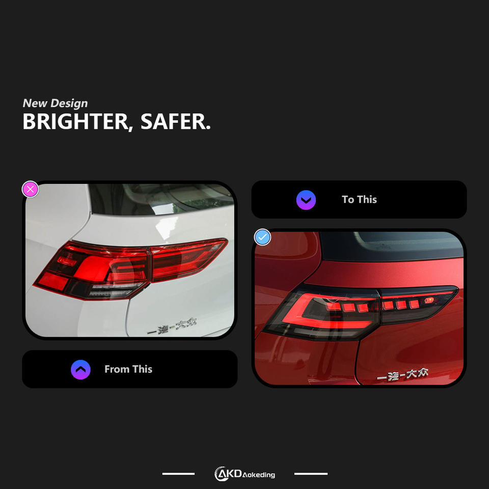 ชิ้นส่วนไฟท้าย LED สำหรับกอล์ฟ8ถึง8.5เลนส์สีใสอัพเกรดไฟท้ายไฟเบรกเลี้ยว