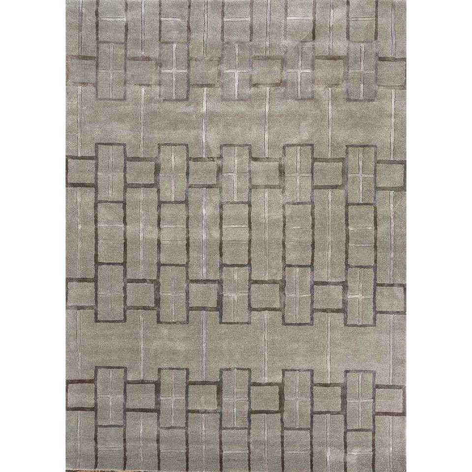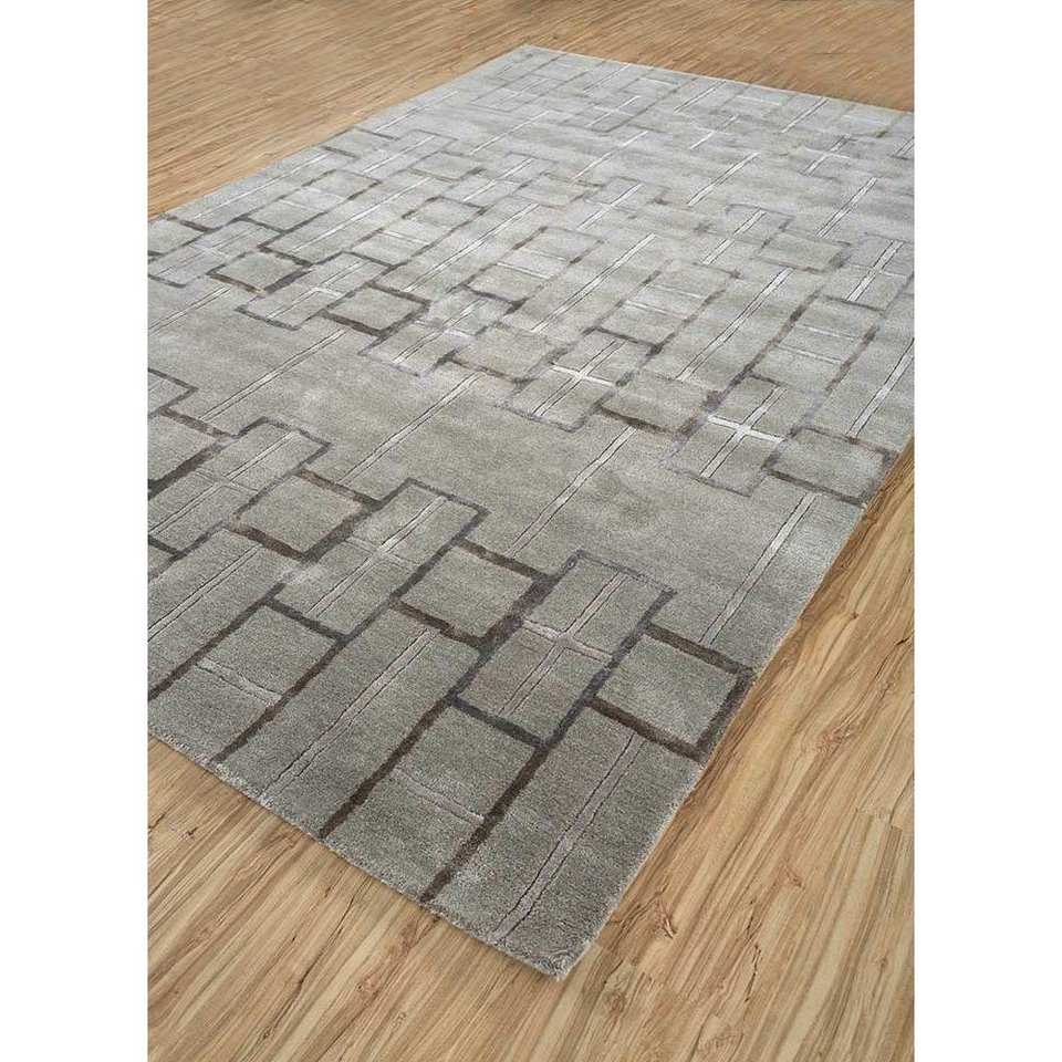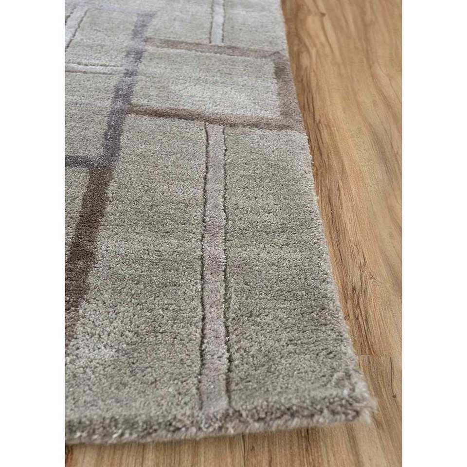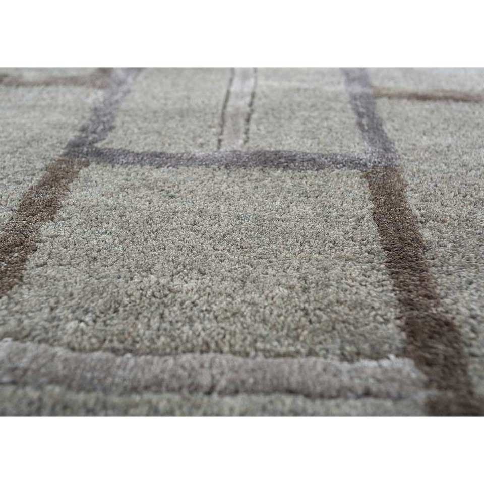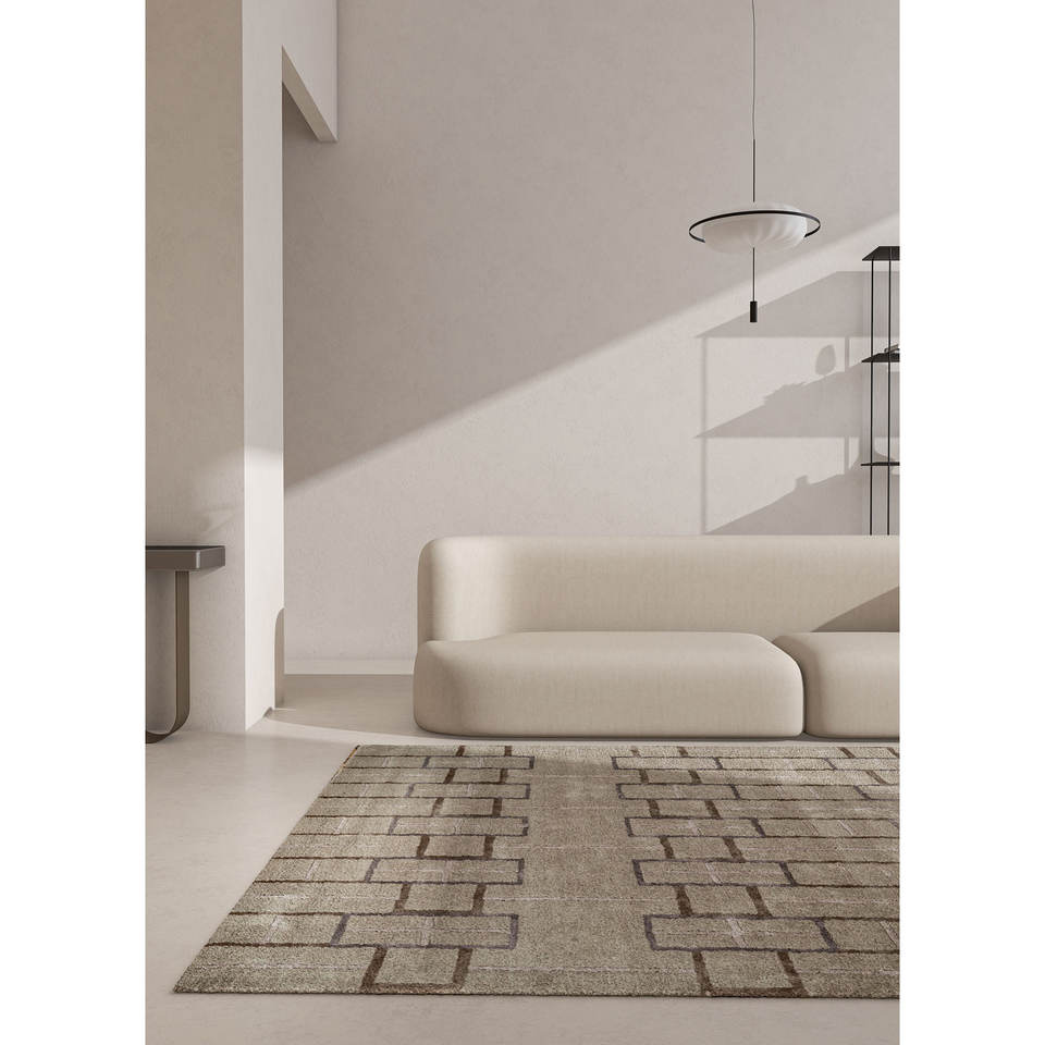 พรมขนสัตว์ผสมวิสโคสถักมือ Modo สีเบจน้ำตาล ลายเรขาคณิต สำหรับบ้าน ลายทางรูปสี่เหลี่ยมผืนผ้า หนา 10 มม. สำหรับห้องนั่งเล่น