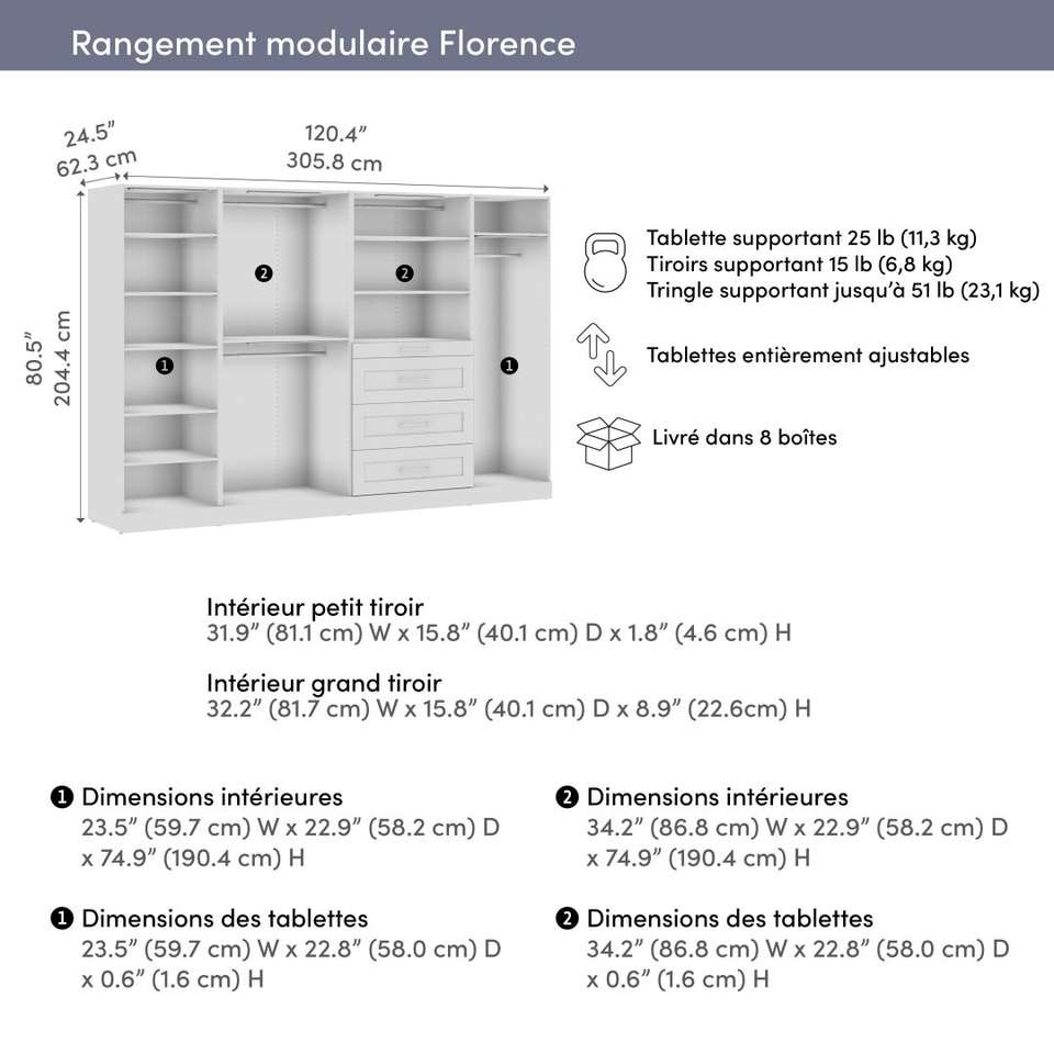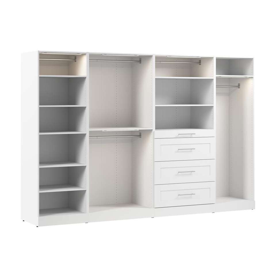ระบบตู้เสื้อผ้าแบบแยกส่วนพร้อมชั้นวางลิ้นชักแท่งเสื้อผ้าและไฟ LED สไตล์เครื่องปั่น121W x 25D
