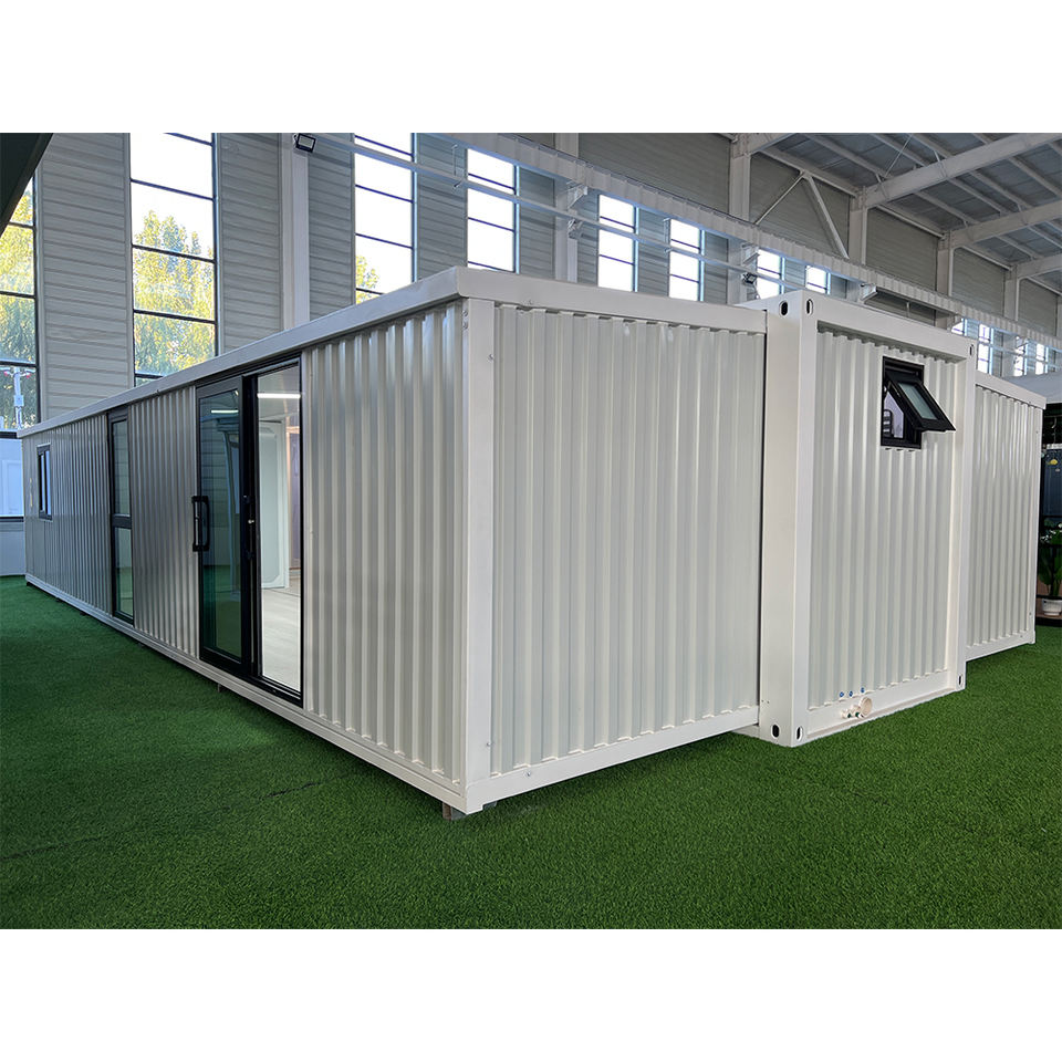 บ้านคอนเทนเนอร์แบบโมดูลาร์ ขยายได้ ปี 2026 สวนสวย ขนาด 40 ฟุต 3 ห้องนอน 3 ห้องน้ำ บ้านคอนเทนเนอร์แบบโมดูลาร์สำหรับครอบครัว หลังคาทรงสามเหลี่ยม