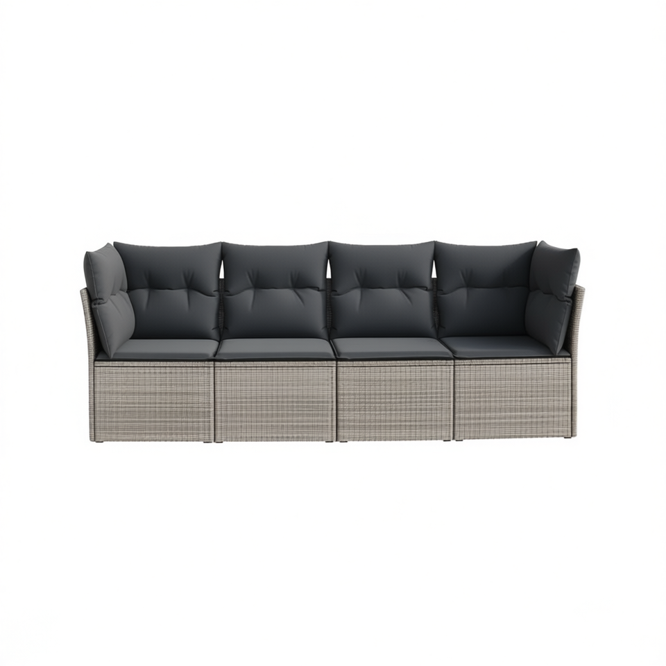 ชุดโซฟาหวายสีเทาแบบโมดูลาร์ 4 ที่นั่ง สำหรับสวน ดีไซน์ร่วมสมัยสำหรับใช้งานกลางแจ้ง