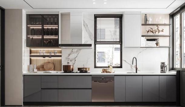 ตู้ห้องครัวแบบแยกส่วนตู้ตู้ดีไซน์ตามสั่ง