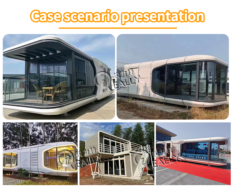 โมดูลสำเร็จรูปเรือเหาะจีนเรือเหาะขนาดเล็กเชิงพาณิชย์บ้านภาชนะแคปซูลสำเร็จรูปโรงแรมเคลื่อนที่ทำจากเหล็ก