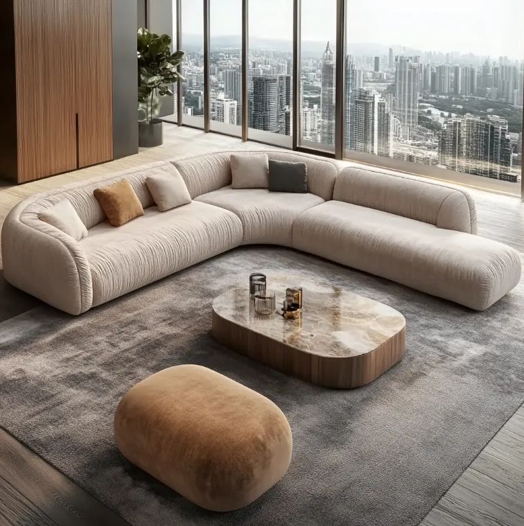 โซฟาโมดูลาร์แบบประกอบส่วน โซฟาเข้ามุมพร้อมเก้าอี้ยาวปรับนอนได้ หุ้มด้วยผ้ากำมะหยี่ ชุดห้องนั่งเล่นสไตล์โมเดิร์นสำหรับบ้านพักตากอากาศ