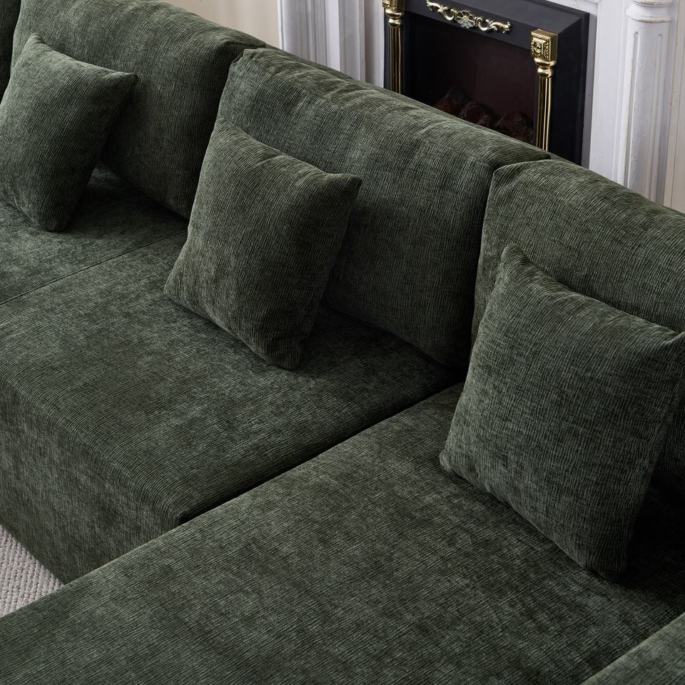โซฟาแบบแยกส่วนพร้อมเก้าอี้นอนขนาดใหญ่รูปตัวยูสำหรับนอนโซฟามุมเมฆสำหรับห้องนั่งเล่นสำนักงานไม่จำเป็นต้องประกอบสีเขียว