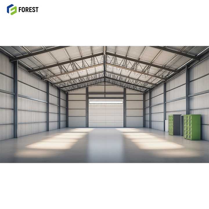 อาคารโรงงานสำเร็จรูปเหล็กแบบโมดูลาร์พร้อมโถงเข้าออกทนไฟหนัก หลังคาป้องกันลมแรง บริการเชื่อมและตัดโลหะ