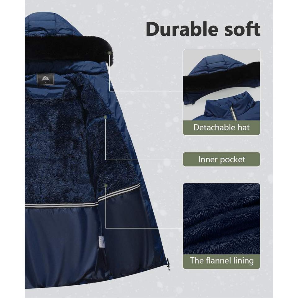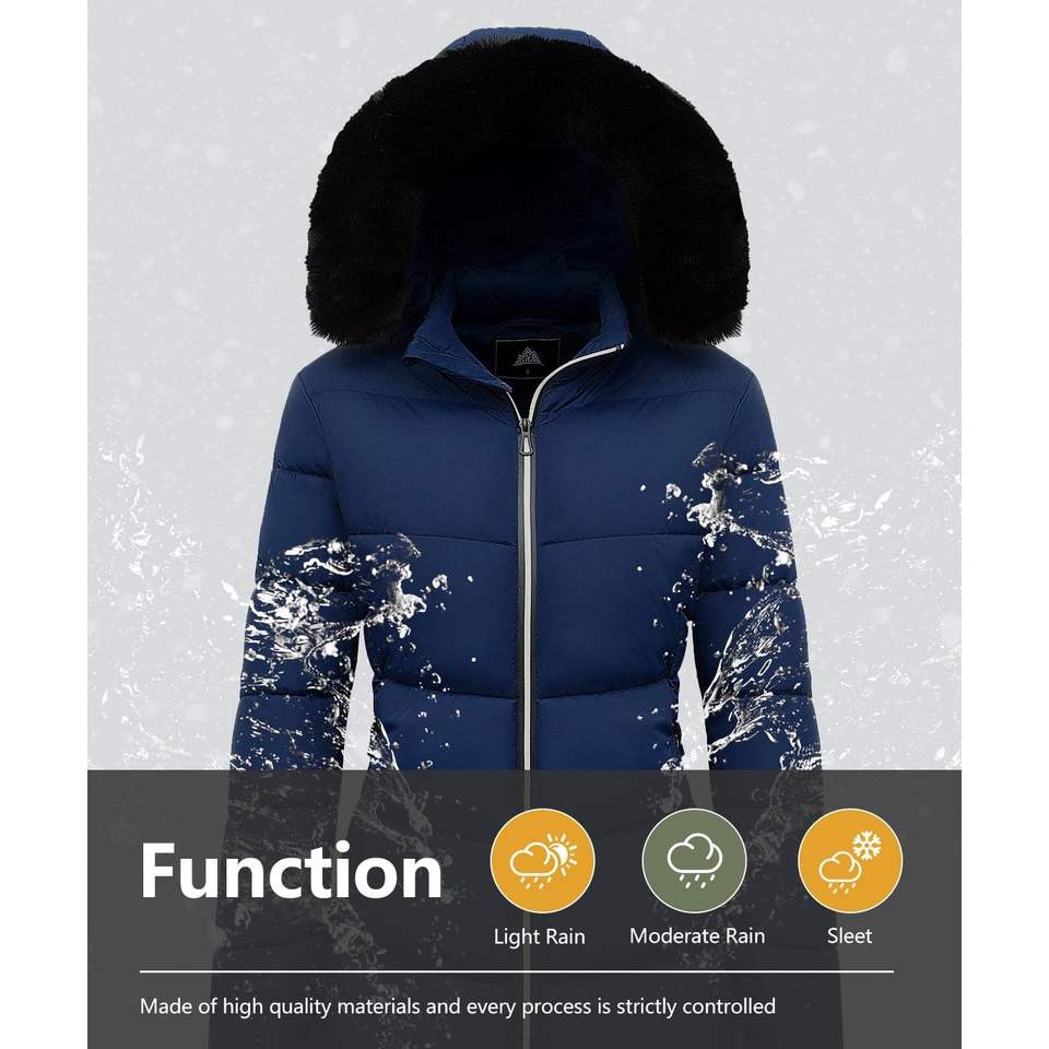 เสื้อพัฟเฟอร์ผู้หญิง Moerdeng สำหรับฤดูหนาว ผ้าโพลีเอสเตอร์บุใยสังเคราะห์ กันลม กันน้ำ แขนยาว ผ้าทอเนื้ออบอุ่น หมวกถอดออกได้