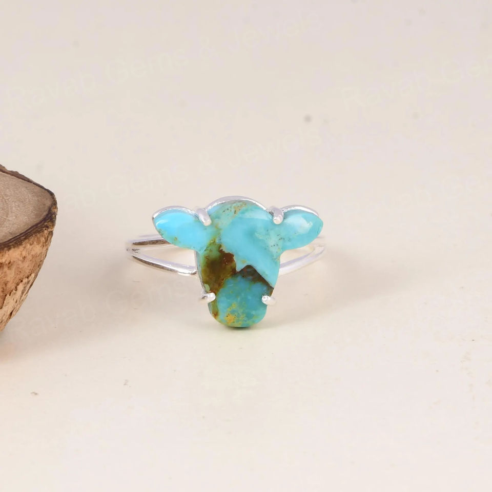 แหวนหัววัวสีเงิน925สีเทอร์ควอยซ์จากธรรมชาติ