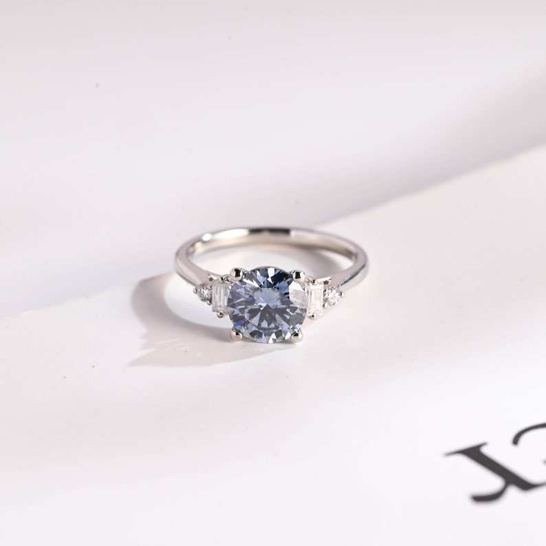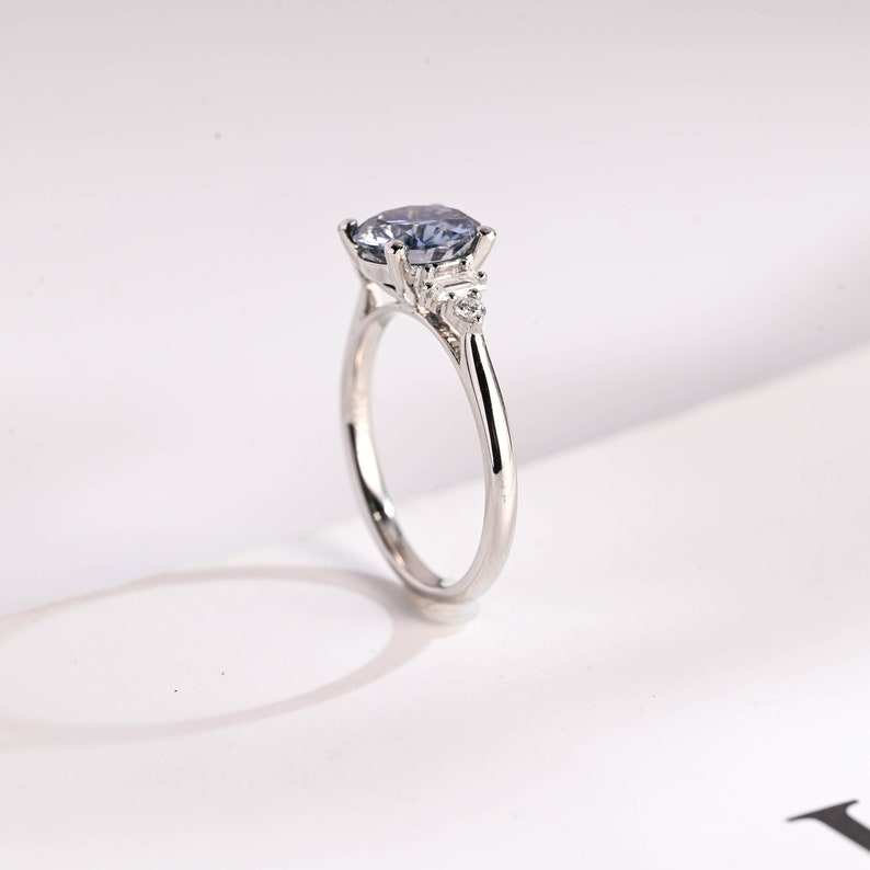 แหวนมอสซาไนต์ 1 กะรัต สีฟ้าอ่อน ทรงกลม ลายดอกไม้ สำหรับผู้หญิง เงินแท้ 925 สไตล์โรแมนติก ของขวัญสำหรับคู่รัก