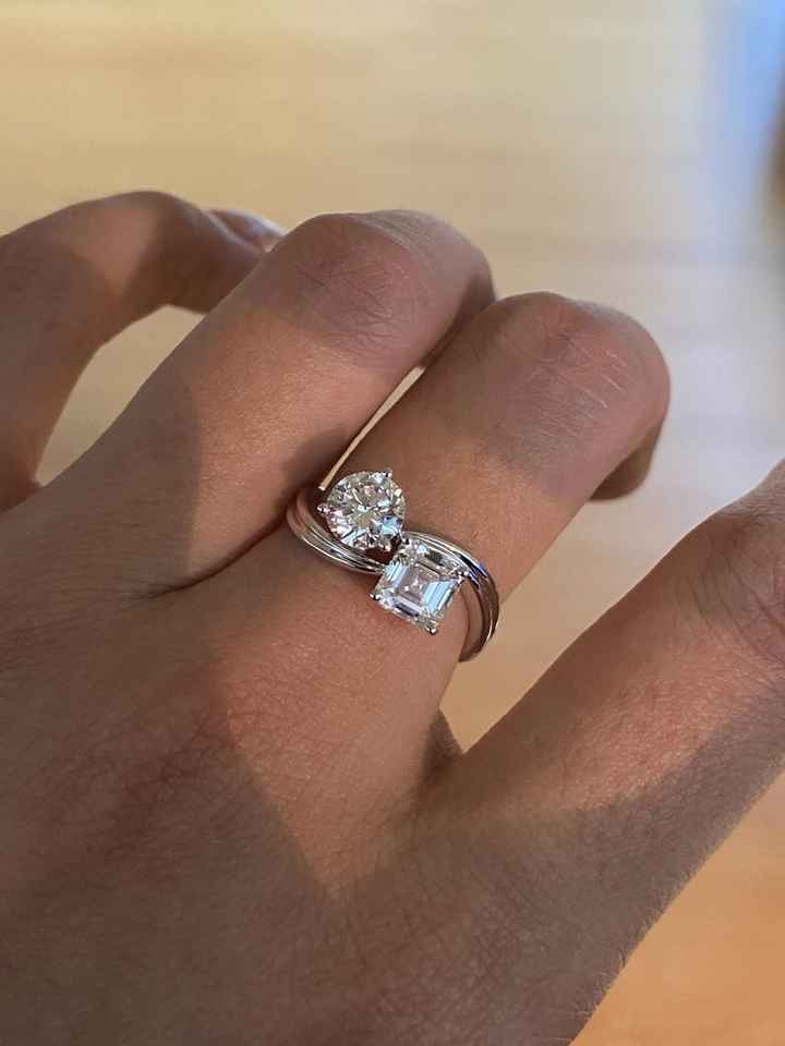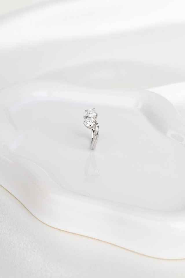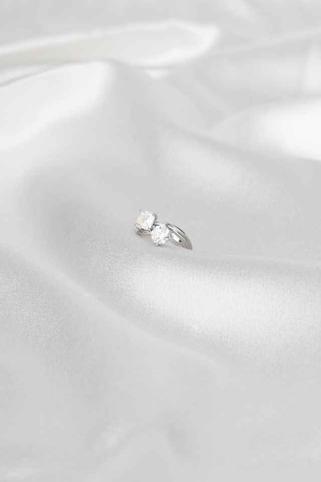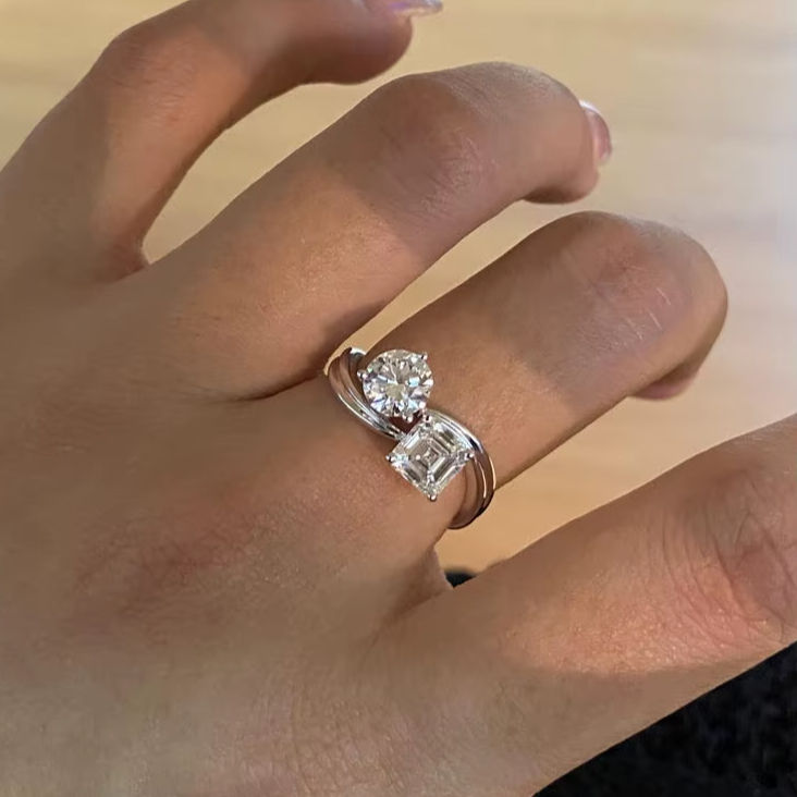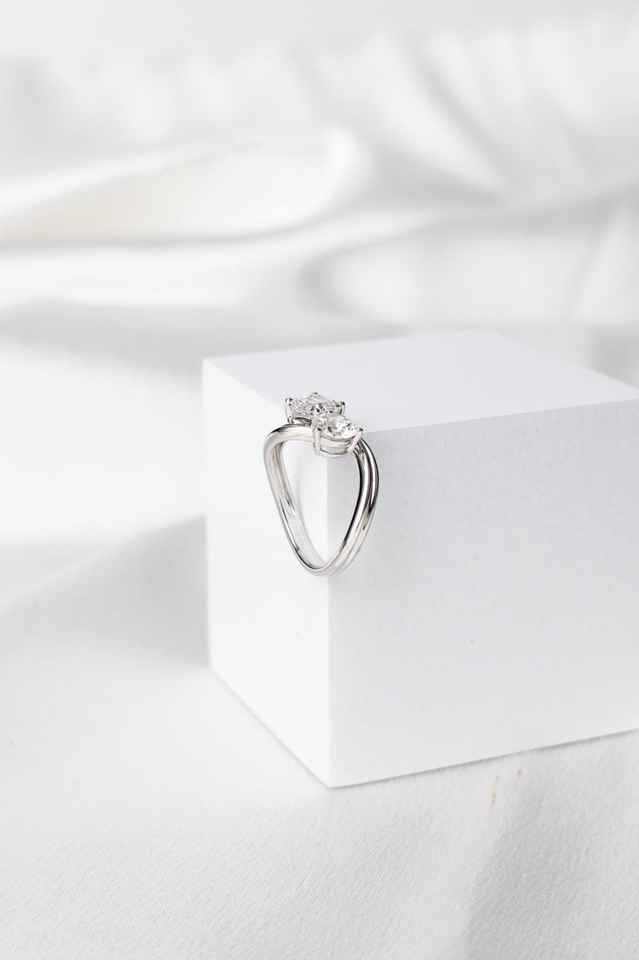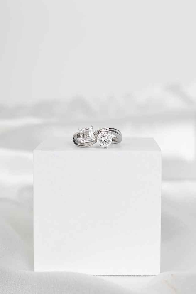 แหวนเพชรสองเม็ดทรงเจ้าหญิงและทรงกลมแบบติดกัน