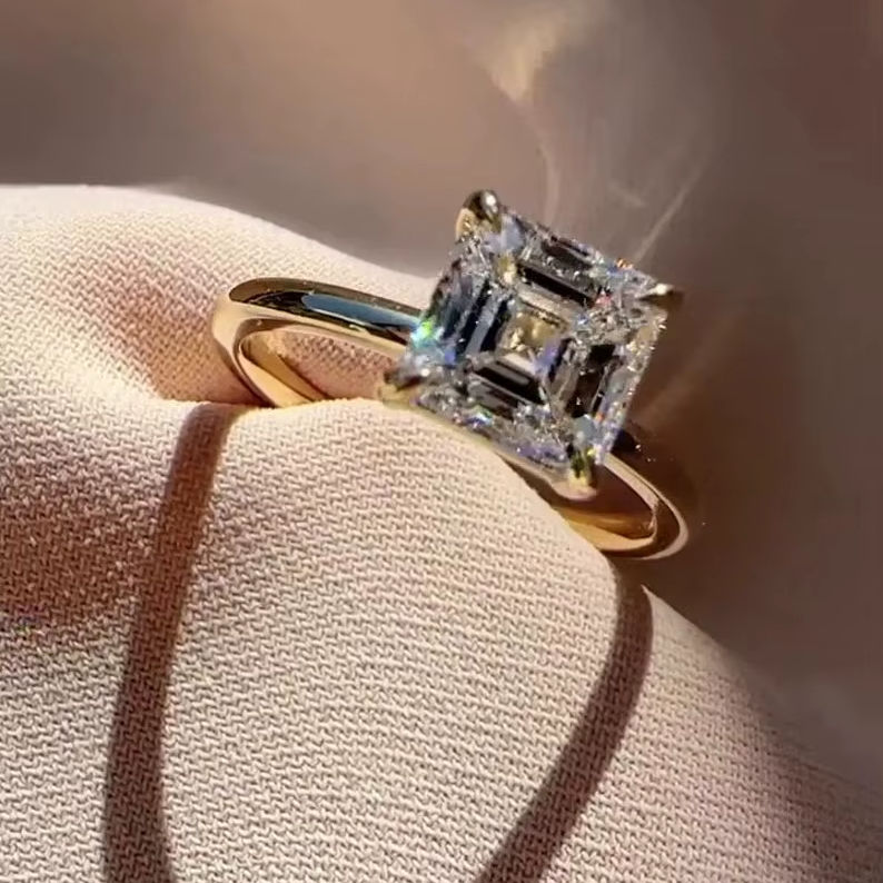 แหวนมอสซาไนต์ 2 กะรัต ทรงแอสเชอร์ ตัดแบบเพชรเม็ดเดี่ยว เงินแท้ 925 ดีไซน์ทันสมัย ของขวัญสำหรับงานครบรอบ งานเลี้ยง หรือเป็นเครื่องประดับ